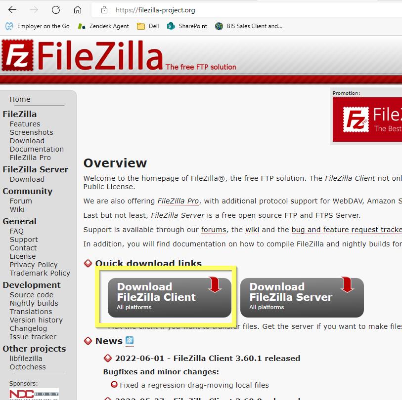 Link: FileZilla – The free FTP solution (filezilla-project.org)